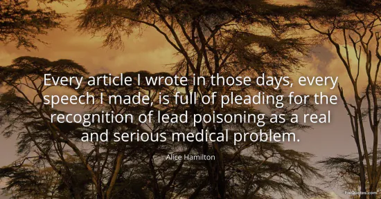 Hamilton, Alice. (2026, January 17). Every article I wrote in those days, every speech I made, is full of pleading for the recognition of lead poisoning as a real and serious medical problem. FixQuotes. https://fixquotes.com/quotes/every-article-i-wrote-in-those-days-every-speech-42469/