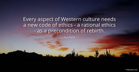 "Every aspect of Western culture needs a new code of ethics - a rational ethics - as a precondition of rebirth." FixQuotes, 17 Jan. 2026, https://fixquotes.com/quotes/every-aspect-of-western-culture-needs-a-new-code-29970/. Accessed 13 Feb. 2026.