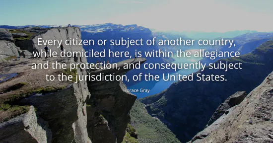 Gray, Horace. "Every citizen or subject of another country, while domiciled here, is within the allegiance and the protection, and consequently subject to the jurisdiction, of the United States." FixQuotes. January 16, 2026. https://fixquotes.com/quotes/every-citizen-or-subject-of-another-country-while-96281/.