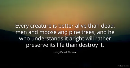 Thoreau, Henry David. "Every creature is better alive than dead, men and moose and pine trees, and he who understands it aright will rather preserve its life than destroy it." FixQuotes. January 17, 2026. https://fixquotes.com/quotes/every-creature-is-better-alive-than-dead-men-and-35763/.