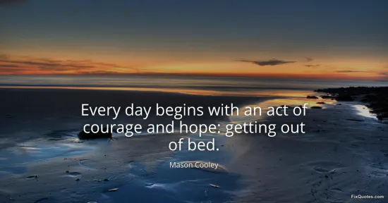 Cooley, Mason. (2026, January 15). Every day begins with an act of courage and hope: getting out of bed. FixQuotes. https://fixquotes.com/quotes/every-day-begins-with-an-act-of-courage-and-hope-115305/