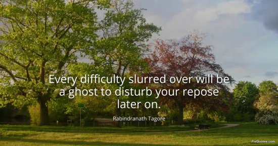 Tagore, Rabindranath. (2026, February 8). Every difficulty slurred over will be a ghost to disturb your repose later on. FixQuotes. https://fixquotes.com/quotes/every-difficulty-slurred-over-will-be-a-ghost-to-14898/