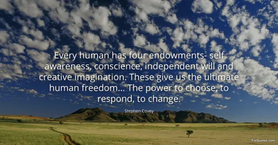 "Every human has four endowments- self awareness, conscience, independent will and creative imagination. These give us the ultimate human freedom... The power to choose, to respond, to change"