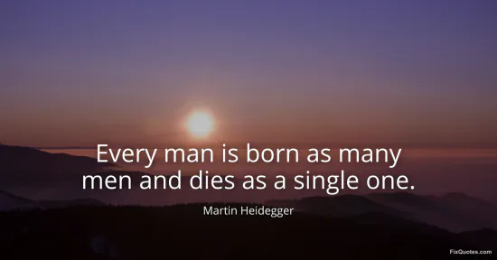 Heidegger, Martin. (2026, February 12). Every man is born as many men and dies as a single one. FixQuotes. https://fixquotes.com/quotes/every-man-is-born-as-many-men-and-dies-as-a-760/