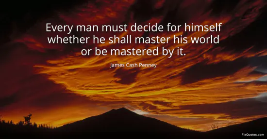 Penney, James Cash. (2026, January 17). Every man must decide for himself whether he shall master his world or be mastered by it. FixQuotes. https://fixquotes.com/quotes/every-man-must-decide-for-himself-whether-he-46782/