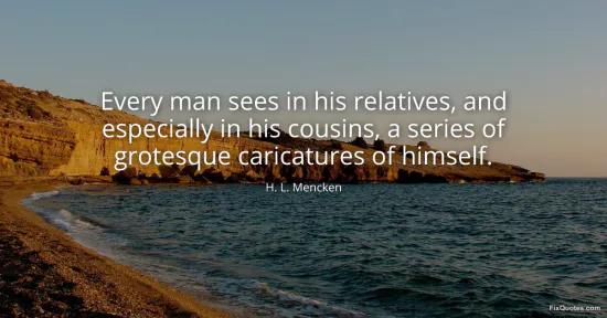 Mencken, H. L. (2026, January 17). Every man sees in his relatives, and especially in his cousins, a series of grotesque caricatures of himself. FixQuotes. https://fixquotes.com/quotes/every-man-sees-in-his-relatives-and-especially-in-33236/