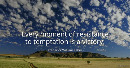 Faber, Frederick William. (2026, January 15). Every moment of resistance to temptation is a victory. FixQuotes. https://fixquotes.com/quotes/every-moment-of-resistance-to-temptation-is-a-55259/