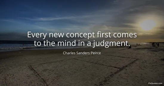 Peirce’s line is a quiet demolition of the romantic myth that ideas arrive pure, then get “applied” later. For him, a “new concept” isn’t a pristine mental object floating into view; it shows up already wearing a verdict. The mind doesn’t simply receive novelty, it assesses it. In Peirce’s pragmatic universe, thinking is action-oriented: a concept is inseparable from what it would license you to infer, expect, or do. That’s what “judgment” is doing here - not moralizing, but committing. To judge is to stick your neck out, to treat a nascent notion as answerable to consequences.