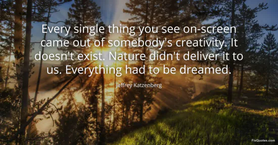 Katzenberg, Jeffrey. (2026, January 16). Every single thing you see on-screen came out of somebody's creativity. It doesn't exist. Nature didn't deliver it to us. Everything had to be dreamed. FixQuotes. https://fixquotes.com/quotes/every-single-thing-you-see-on-screen-came-out-of-113248/