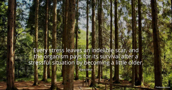 "Every stress leaves an indelible scar, and the organism pays for its survival after a stressful situation by becoming a little older." FixQuotes, 15 Jan. 2026, https://fixquotes.com/quotes/every-stress-leaves-an-indelible-scar-and-the-53739/. Accessed 12 Feb. 2026.