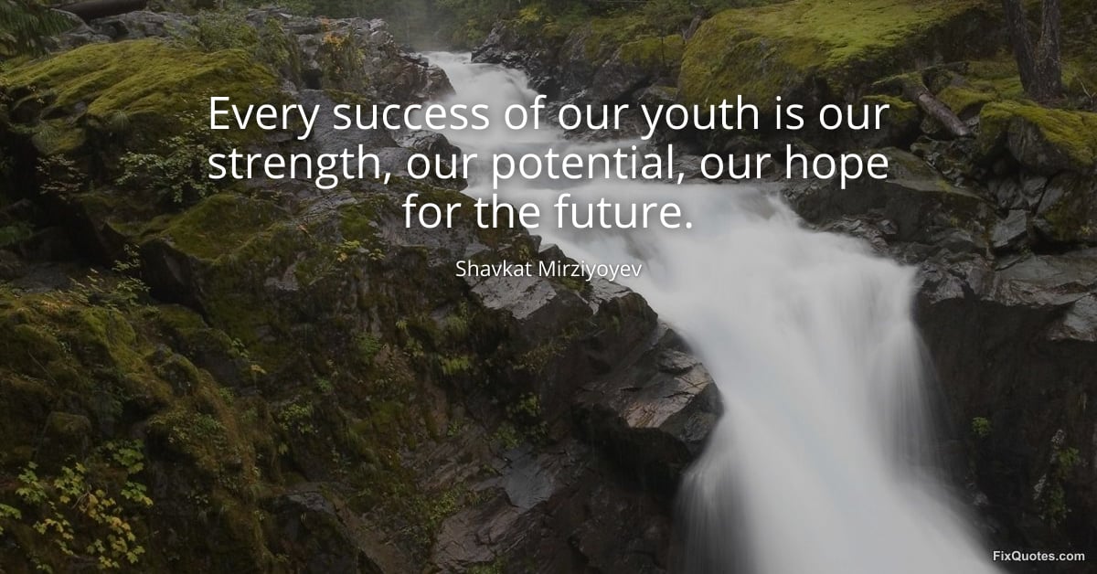 Mirziyoyev, Shavkat. (2026, March 7). Every success of our youth is our strength, our potential, our hope for the future. FixQuotes. https://fixquotes.com/quotes/every-success-of-our-youth-is-our-strength-our-185725/