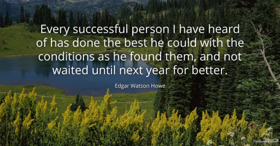 Howe, Edgar Watson. (2026, January 17). Every successful person I have heard of has done the best he could with the conditions as he found them, and not waited until next year for better. FixQuotes. https://fixquotes.com/quotes/every-successful-person-i-have-heard-of-has-done-49099/