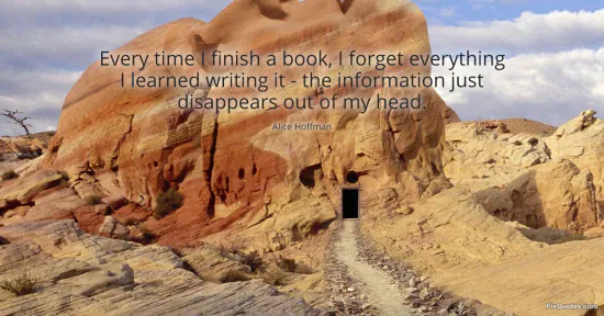 Hoffman, Alice. (2026, January 16). Every time I finish a book, I forget everything I learned writing it - the information just disappears out of my head. FixQuotes. https://fixquotes.com/quotes/every-time-i-finish-a-book-i-forget-everything-i-138269/