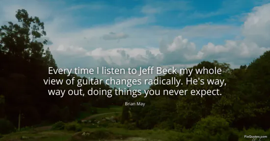 May, Brian. (2026, January 17). Every time I listen to Jeff Beck my whole view of guitar changes radically. He's way, way out, doing things you never expect. FixQuotes. https://fixquotes.com/quotes/every-time-i-listen-to-jeff-beck-my-whole-view-of-38723/