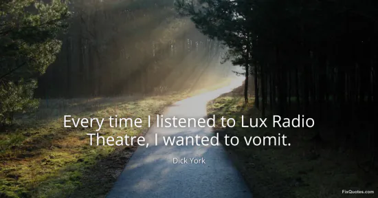York, Dick. "Every time I listened to Lux Radio Theatre, I wanted to vomit." FixQuotes. January 17, 2026. https://fixquotes.com/quotes/every-time-i-listened-to-lux-radio-theatre-i-47971/.