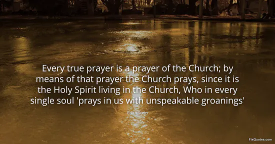 Stein, Edith. "Every true prayer is a prayer of the Church; by means of that prayer the Church prays, since it is the Holy Spirit living in the Church, Who in every single soul 'prays in us with unspeakable groanings'." FixQuotes. January 15, 2026. https://fixquotes.com/quotes/every-true-prayer-is-a-prayer-of-the-church-by-6675/.