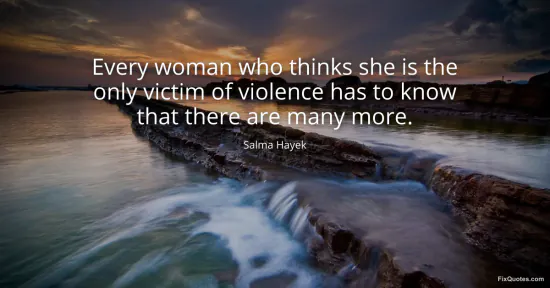 Hayek, Salma. (2026, January 16). Every woman who thinks she is the only victim of violence has to know that there are many more. FixQuotes. https://fixquotes.com/quotes/every-woman-who-thinks-she-is-the-only-victim-of-98691/
