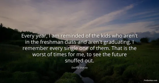Shalala, Donna. (2026, January 17). Every year, I am reminded of the kids who aren't in the freshman class and aren't graduating. I remember every single one of them. That is the worst of times for me, to see the future snuffed out. FixQuotes. https://fixquotes.com/quotes/every-year-i-am-reminded-of-the-kids-who-arent-in-57957/