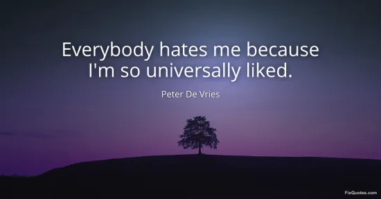 Vries, Peter De. (2026, January 15). Everybody hates me because I'm so universally liked. FixQuotes. https://fixquotes.com/quotes/everybody-hates-me-because-im-so-universally-liked-163676/