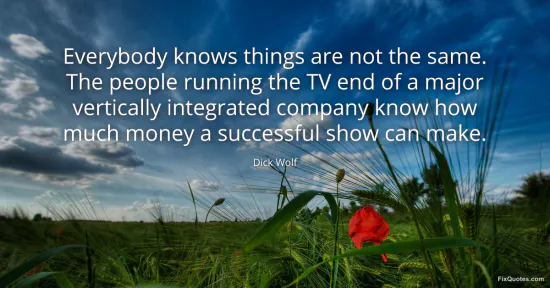 Wolf, Dick. (2026, January 15). Everybody knows things are not the same. The people running the TV end of a major vertically integrated company know how much money a successful show can make. FixQuotes. https://fixquotes.com/quotes/everybody-knows-things-are-not-the-same-the-144620/