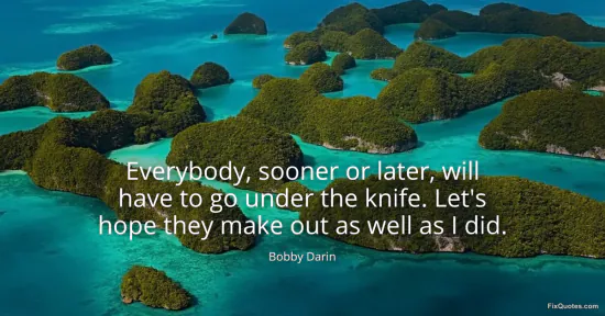 Darin, Bobby. "Everybody, sooner or later, will have to go under the knife. Let's hope they make out as well as I did." FixQuotes. January 17, 2026. https://fixquotes.com/quotes/everybody-sooner-or-later-will-have-to-go-under-49326/.