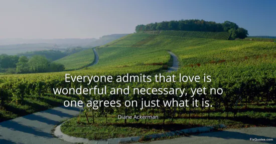 Ackerman, Diane. (2026, January 15). Everyone admits that love is wonderful and necessary, yet no one agrees on just what it is. FixQuotes. https://fixquotes.com/quotes/everyone-admits-that-love-is-wonderful-and-111890/