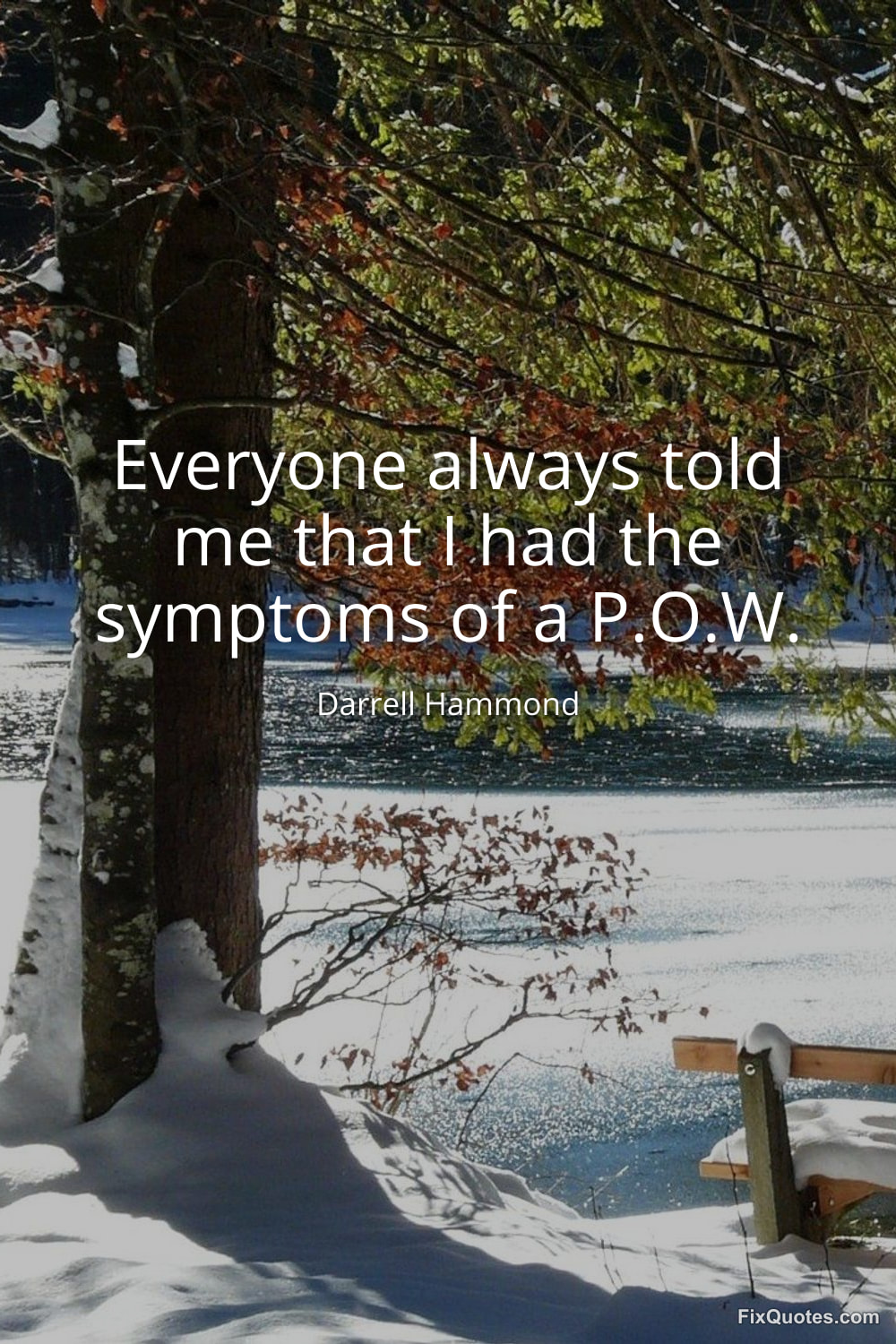 Hammond, Darrell. (2026, January 15). Everyone always told me that I had the symptoms of a P.O.W. FixQuotes. https://fixquotes.com/quotes/everyone-always-told-me-that-i-had-the-symptoms-173626/
