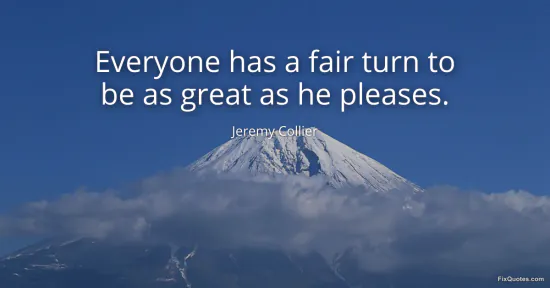 Collier, Jeremy. "Everyone has a fair turn to be as great as he pleases." FixQuotes. January 16, 2026. https://fixquotes.com/quotes/everyone-has-a-fair-turn-to-be-as-great-as-he-91506/.