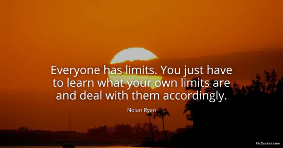 Ryan, Nolan. (2026, January 15). Everyone has limits. You just have to learn what your own limits are and deal with them accordingly. FixQuotes. https://fixquotes.com/quotes/everyone-has-limits-you-just-have-to-learn-what-64523/