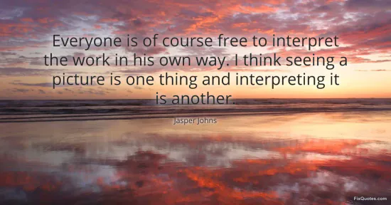 Johns, Jasper. "Everyone is of course free to interpret the work in his own way. I think seeing a picture is one thing and interpreting it is another." FixQuotes. January 17, 2026. https://fixquotes.com/quotes/everyone-is-of-course-free-to-interpret-the-work-56996/.