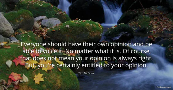 McGraw, Tim. (2026, January 14). Everyone should have their own opinion and be able to voice it. No matter what it is. Of course, that does not mean your opinion is always right. But, you're certainly entitled to your opinion. FixQuotes. https://fixquotes.com/quotes/everyone-should-have-their-own-opinion-and-be-156101/