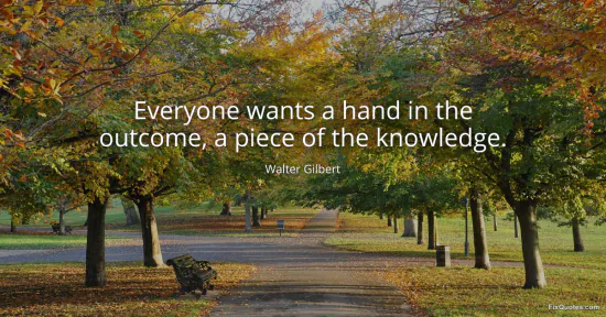 Gilbert, Walter. (2026, January 16). Everyone wants a hand in the outcome, a piece of the knowledge. FixQuotes. https://fixquotes.com/quotes/everyone-wants-a-hand-in-the-outcome-a-piece-of-83993/