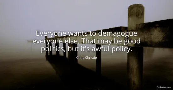 “Demagogue” is the loaded verb here. It’s not merely “spin” or “grandstand”; it’s an accusation of bad faith, of turning people into tools by feeding resentment and fear. By choosing that word, Christie signals both insider knowledge (he’s seen how the sausage gets made) and a moral register (this isn’t just tacky, it’s corrosive). The punchline split - “good politics” versus “awful policy” - sets up a bleak incentive structure: the tactics that win headlines and elections are the same tactics that sabotage governing. It’s less a personal complaint than a diagnosis of a media-and-primary ecosystem that rewards performative outrage over workable compromises.