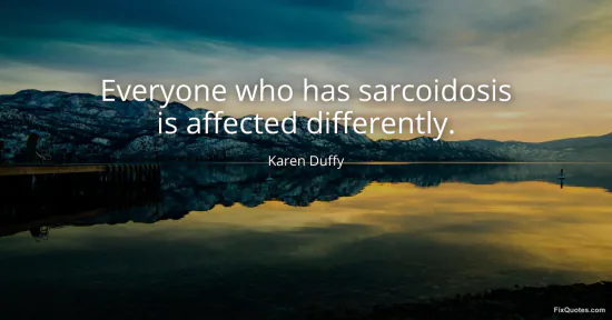 Duffy, Karen. (2026, January 15). Everyone who has sarcoidosis is affected differently. FixQuotes. https://fixquotes.com/quotes/everyone-who-has-sarcoidosis-is-affected-87700/