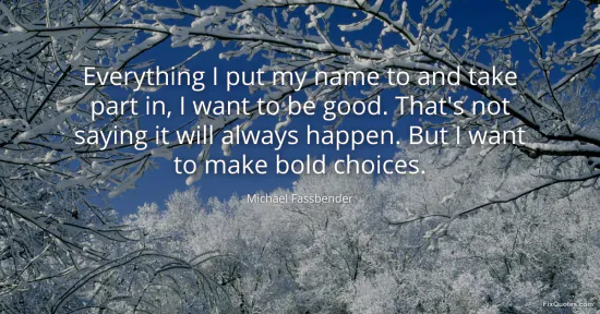 Fassbender, Michael. (2026, January 17). Everything I put my name to and take part in, I want to be good. That's not saying it will always happen. But I want to make bold choices. FixQuotes. https://fixquotes.com/quotes/everything-i-put-my-name-to-and-take-part-in-i-64169/