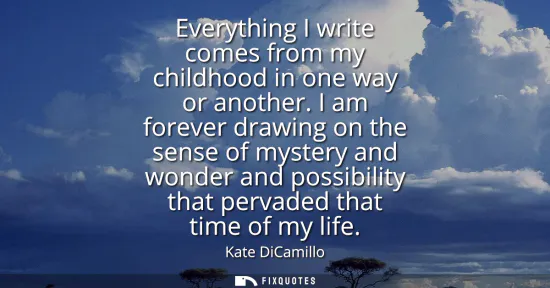 "Everything I write comes from my childhood in one way or another. I am forever drawing on the sense of mystery and wonder and possibility that pervaded that time of my life"