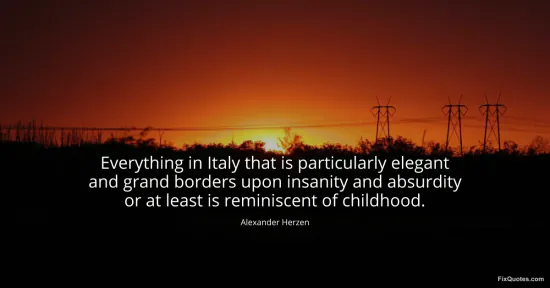 Herzen, Alexander. (2026, January 17). Everything in Italy that is particularly elegant and grand borders upon insanity and absurdity or at least is reminiscent of childhood. FixQuotes. https://fixquotes.com/quotes/everything-in-italy-that-is-particularly-elegant-40955/