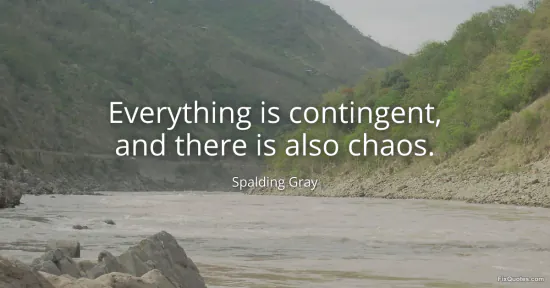 “Everything is contingent, and there is also chaos” lands like a shrug that’s secretly a scream. Coming from Spalding Gray - an actor who turned monologue into a high-wire act of self-exposure - it’s not philosophy dressed up as wisdom. It’s a survival tactic: name the instability out loud so it can’t sneak up on you.