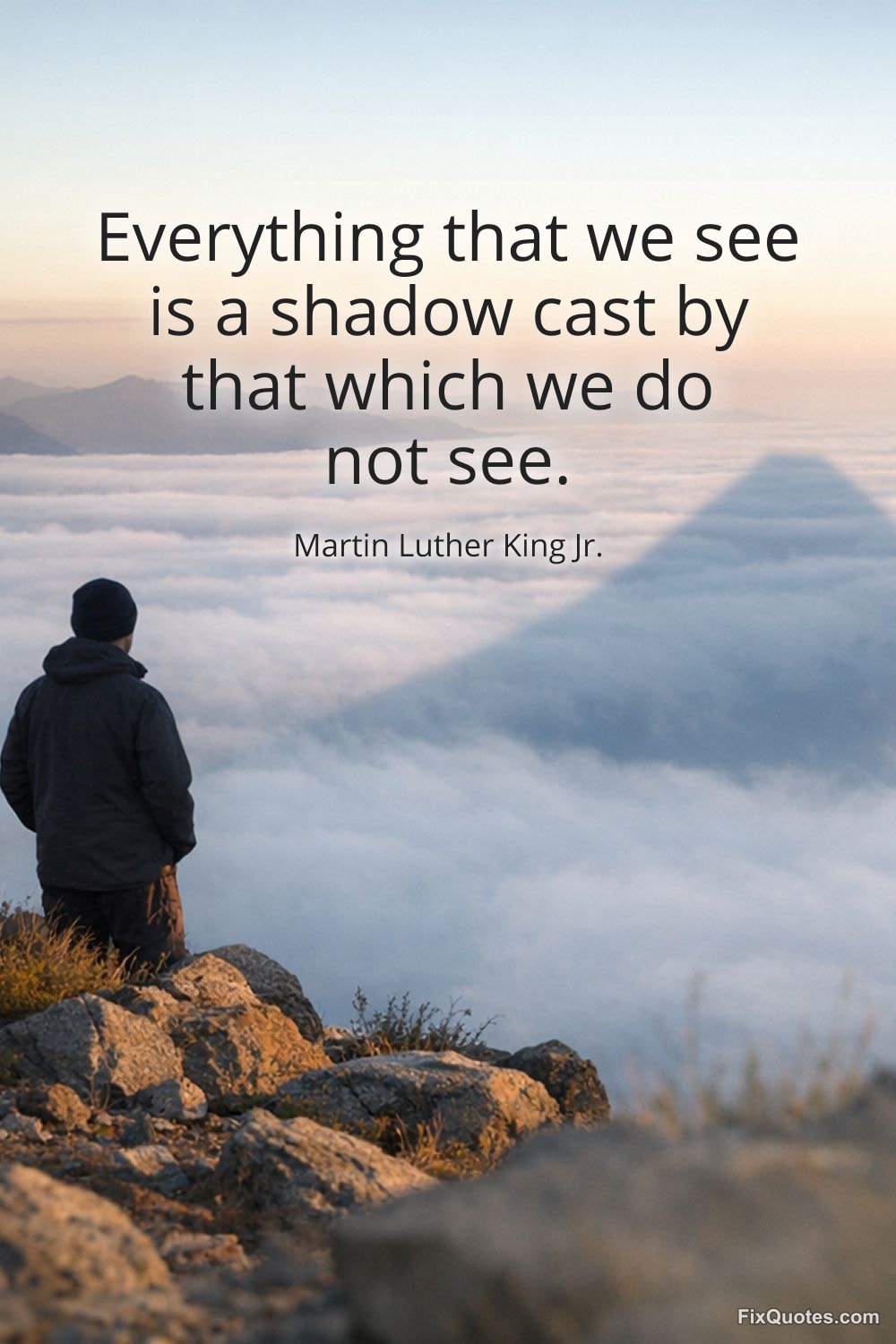 A shadow is proof of presence, but also an admission of blindness. King’s line works because it flips the usual hierarchy: what feels solid and obvious in public life is downgraded to an effect, while the real causes sit offstage, unseen. It’s a metaphysical-sounding sentence with a very practical political edge. If “everything we see” is only the projection, then focusing only on headlines, riots, speeches, or even laws is a kind of civic superstition - treating symptoms as the disease.