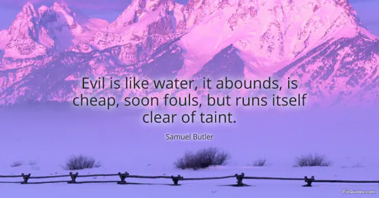 Butler, Samuel. "Evil is like water, it abounds, is cheap, soon fouls, but runs itself clear of taint." FixQuotes. January 17, 2026. https://fixquotes.com/quotes/evil-is-like-water-it-abounds-is-cheap-soon-fouls-36545/.