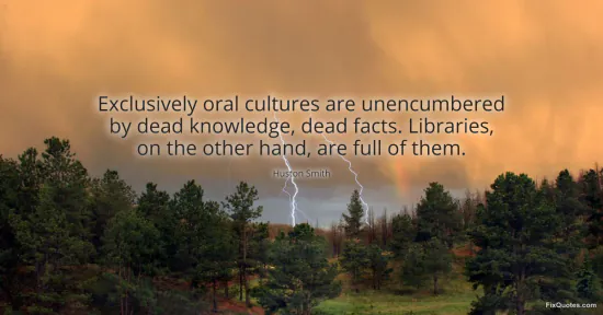 Smith, Huston. (2026, January 18). Exclusively oral cultures are unencumbered by dead knowledge, dead facts. Libraries, on the other hand, are full of them. FixQuotes. https://fixquotes.com/quotes/exclusively-oral-cultures-are-unencumbered-by-9463/