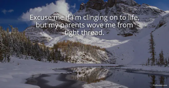 Calment, Jeanne. (2026, January 18). Excuse me if I'm clinging on to life, but my parents wove me from tight thread. FixQuotes. https://fixquotes.com/quotes/excuse-me-if-im-clinging-on-to-life-but-my-11891/