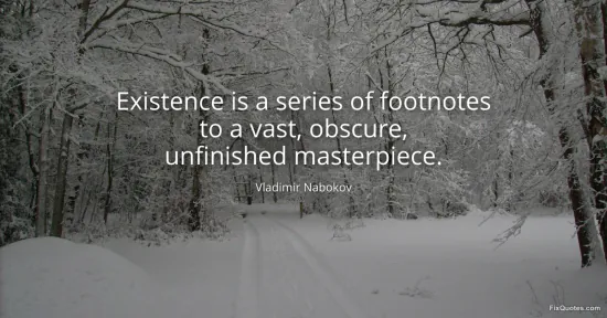 Nabokov, Vladimir. "Existence is a series of footnotes to a vast, obscure, unfinished masterpiece." FixQuotes. January 14, 2026. https://fixquotes.com/quotes/existence-is-a-series-of-footnotes-to-a-vast-16298/.