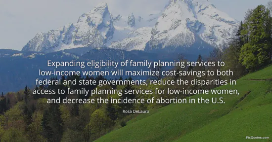 DeLauro, Rosa. "Expanding eligibility of family planning services to low-income women will maximize cost-savings to both federal and state governments, reduce the disparities in access to family planning services for low-income women, and decrease the incidence of abortion in the U.S." FixQuotes. January 15, 2026. https://fixquotes.com/quotes/expanding-eligibility-of-family-planning-services-159395/.