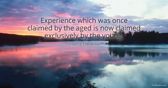 Chesterton, Gilbert K. (2026, January 17). Experience which was once claimed by the aged is now claimed exclusively by the young. FixQuotes. https://fixquotes.com/quotes/experience-which-was-once-claimed-by-the-aged-is-35049/