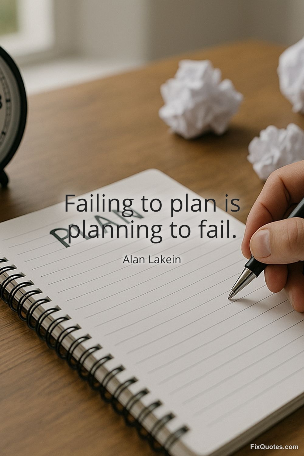 Lakein, Alan. "Failing to plan is planning to fail." FixQuotes. January 11, 2026. https://fixquotes.com/quotes/failing-to-plan-is-planning-to-fail-121408/.