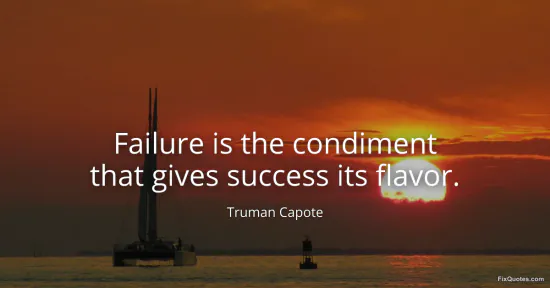 Capote, Truman. (2026, January 15). Failure is the condiment that gives success its flavor. FixQuotes. https://fixquotes.com/quotes/failure-is-the-condiment-that-gives-success-its-2134/