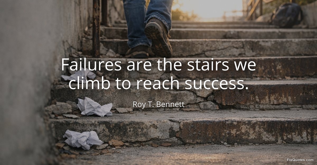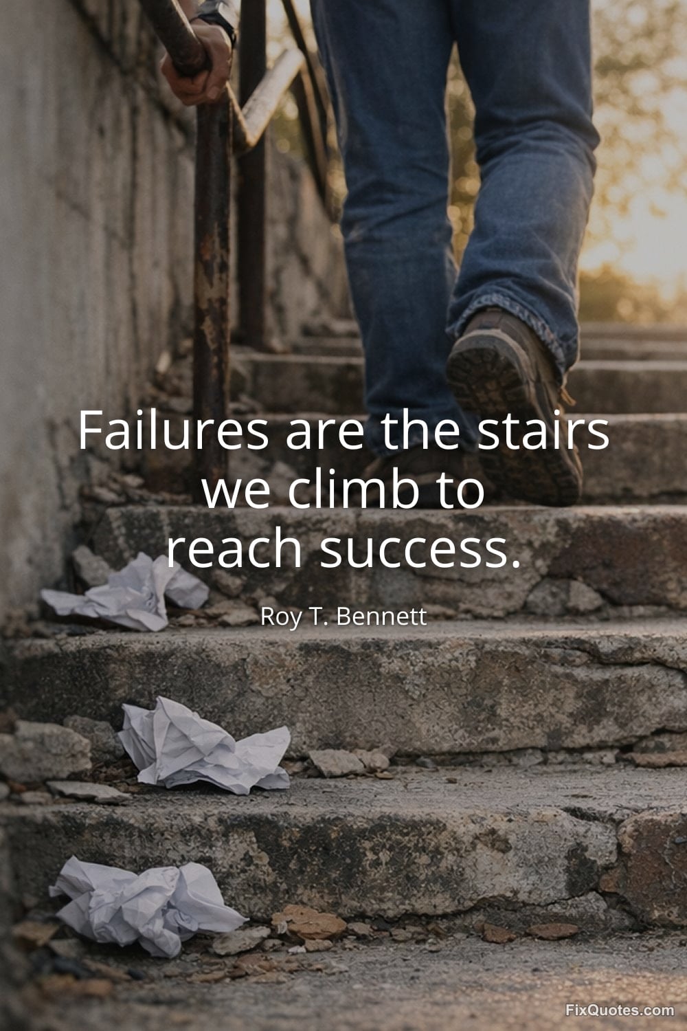 Bennett, Roy T. "Failures are the stairs we climb to reach success." FixQuotes. February 7, 2026. https://fixquotes.com/quotes/failures-are-the-stairs-we-climb-to-reach-success-183815/.