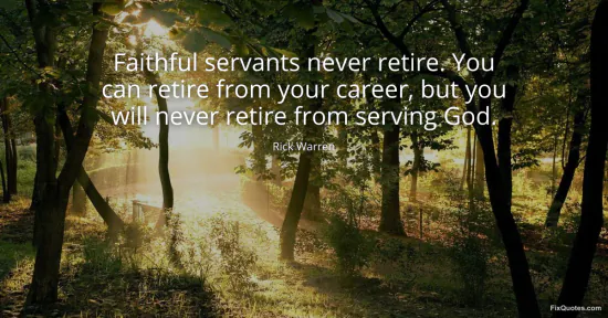 Warren, Rick. (2026, February 8). Faithful servants never retire. You can retire from your career, but you will never retire from serving God. FixQuotes. https://fixquotes.com/quotes/faithful-servants-never-retire-you-can-retire-91745/