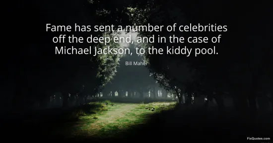 Maher, Bill. (2026, January 17). Fame has sent a number of celebrities off the deep end, and in the case of Michael Jackson, to the kiddy pool. FixQuotes. https://fixquotes.com/quotes/fame-has-sent-a-number-of-celebrities-off-the-30131/